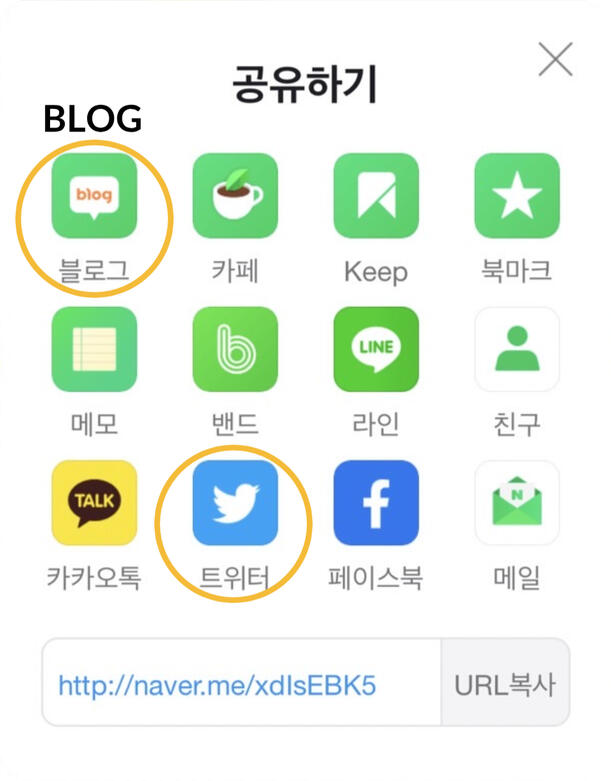 4. Click ๋ธ๋ก๊ทธ(blog) to shae via Naverblog