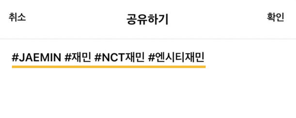 5. Make sure to include "#JAEMIN #์ฌ๋ฏผ #NCT์ฌ๋ฏผ #์์ํฐ์ฌ๋ฏผ" and click ํ์ธ if you are done!